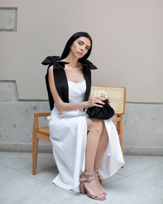 Mini Bolso bordado con asa de perlas, la combinacion perfecta.